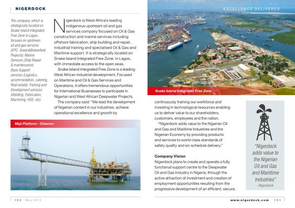 “ Nigerdock adds value to the Nigerian Oil and Gas and Maritime Industries and the Nigerian Economy by providing products and services to world class standards of safety quality and on-schedule delivery .”