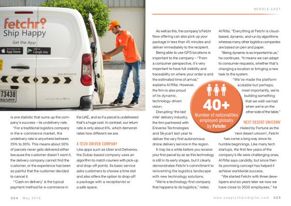 Hailed by Fortune as the ‘ next desert unicorn ’, Fetchr has come a long way since its humble beginnings . Like many tech startups , the first few years of the company ’ s life were challenging ones , Al Rifai says candidly , but since then its promising concept has helped it achieve worldwide success . “ We started Fetchr with three developers and six years later we now we have close to 3500 employees ,” he