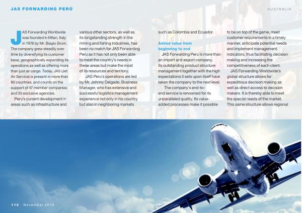 JAS Peru ’ s operations are led by Mr . Johnny Delgado , Business Manager , who has extensive and successful logistics management experience not only in his country but also in neighboring markets