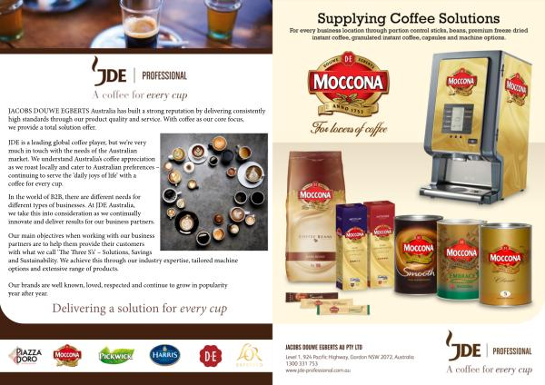 JACOBS DOUWE EGBERTS Australia has built a strong reputation by delivering consistently high standards through our product quality and service . With coffee as our core focus , we provide a total solution offer .