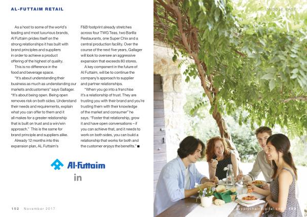 As a host to some of the world ’ s leading and most luxurious brands , Al Futtaim prides itself on the strong relationships it has built with brand principles and suppliers in order to achieve a product offering of the highest of quality . This is no difference in the food and beverage space .