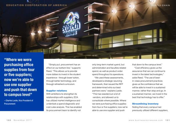 “ Where we were purchasing office supplies from four or five suppliers ; now we ’ re able to use one supplier and push that down to campus level ”