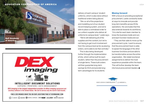 Moving forward With a focus on providing exceptional procurement , Leslie constantly looks at ways to innovate and provide long-term benefits across ECAs operations . He concludes that this also extends towards its workforce . “ It is vital for each team member to know the business inside and out , and each function inside and out .
