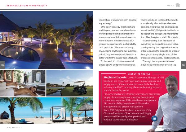 One such strategy that Stéphane and his procurement team have been working on is the implementation of a more sustainably focused procurement function , which echoes a VLH groupwide approach to sustainability best practice . “ We are constantly encouraging and helping our business units to buy more responsibly and in a better way for the planet ,” says Stéphane . To this end , VLH has removed all plastic straws and polystyrene boxes where used and replaced them with eco-friendly alternatives wherever possible . The group has also replaced more than 200,000 plastic bottles from its operations through the implementation of bottling plants at all of its hotels . “ Sustainability is at the heart of everything we do and it ’ s rooted within our day-to-day thinking and actions in order to enable the group to be greener throughout every single step of the procurement process ,” adds Stéphane .