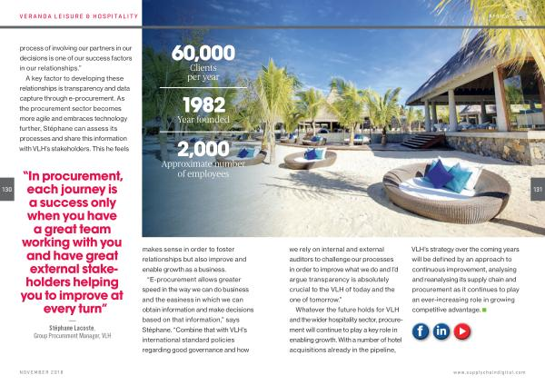 “ E-procurement allows greater speed in the way we can do business and the easiness in which we can obtain information and make decisions based on that information ,” says Stéphane . “ Combine that with VLH ’ s international standard policies regarding good governance and how