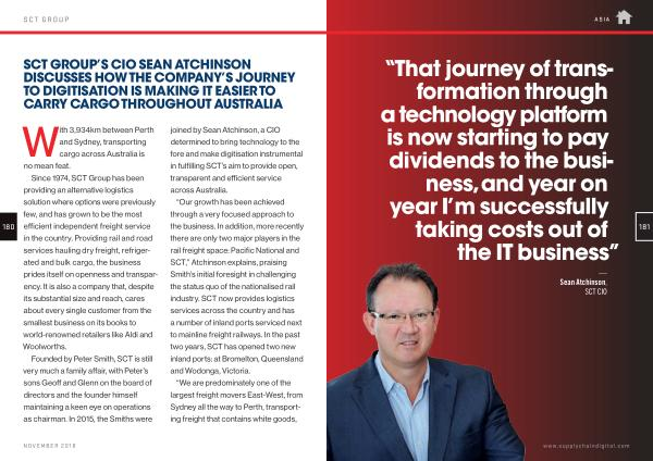 SCT GROUP ’ S CIO SEAN ATCHINSON DISCUSSES HOW THE COMPANY ’ S JOURNEY TO DIGITISATION IS MAKING IT EASIER TO CARRY CARGO THROUGHOUT AUSTRALIA