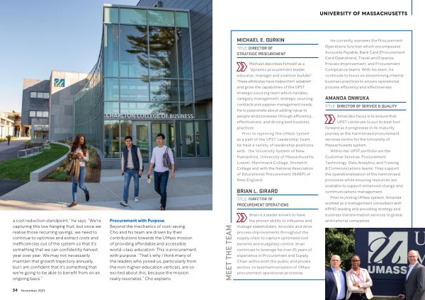 Procurement with Purpose Beyond the mechanics of cost-saving , Cho and his team are driven by their contributions towards the UMass mission of providing affordable and accessible world-class education . This is procurement with purpose . “ That ’ s why I think many of the leaders who joined us , particularly from the non-higher-education verticals , are so excited about this , because the mission really resonates ,” Cho explains .