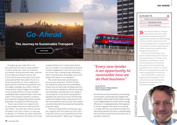 GLYN WATTS TITLE : GROUP HEAD OF PROCUREMENT INDUSTRY : TRANSPORTATION LOCATION : UNITED KINGDOM
