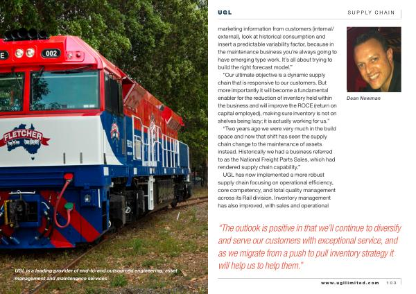 UGL has now implemented a more robust supply chain focusing on operational efficiency , core competency , and total quality management across its Rail division . Inventory management has also improved , with sales and operational