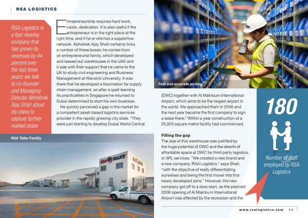 Filling the gap The size of this warehouse was justified by the huge potential of DWC and the dearth of affordable space at DWC for third party logistics , or 3PL services . “ We created a new brand and a new company , RSA Logistics ,” says Shah , “ with the objective of really differentiating ourselves and being the first mover into this newly developed zone .” However , the new company got off to a slow start , as the planned 2008 opening of Al Maktoum International Airport was affected by the recession and the