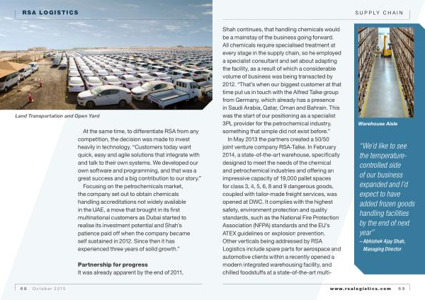 Focusing on the petrochemicals market , the company set out to obtain chemicals handling accreditations not widely available in the UAE , a move that brought in its first multinational customers as Dubai started to realise its investment potential and Shah ’ s patience paid off when the company became self sustained in 2012 . Since then it has experienced three years of solid growth .”