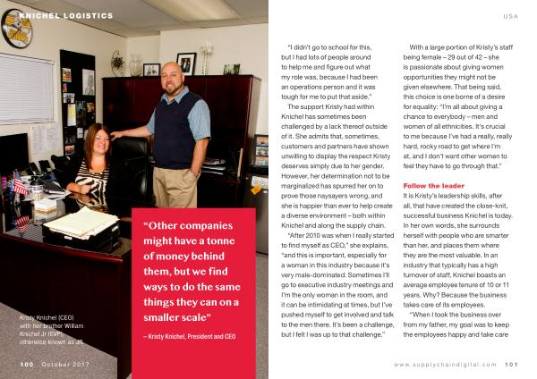 The support Kristy had within Knichel has sometimes been challenged by a lack thereof outside of it . She admits that , sometimes , customers and partners have shown unwilling to display the respect Kristy deserves simply due to her gender . However , her determination not to be marginalized has spurred her on to prove those naysayers wrong , and she is happier than ever to help create a diverse environment – both within Knichel and along the supply chain .