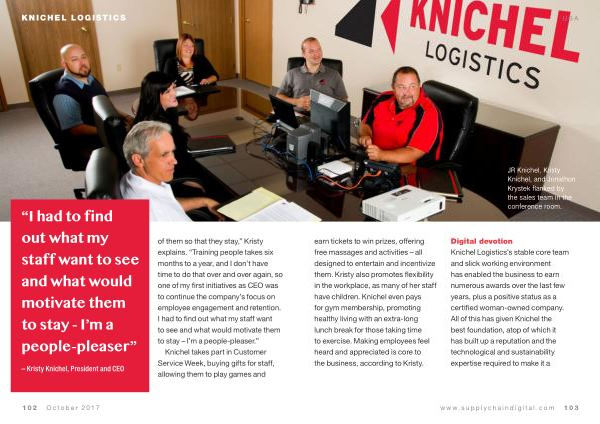 – Kristy Knichel , President and CEO of them so that they stay ,” Kristy explains . “ Training people takes six months to a year , and I don ’ t have time to do that over and over again , so one of my first initiatives as CEO was to continue the company ’ s focus on employee engagement and retention . I had to find out what my staff want to see and what would motivate them to stay – I ’ m a people-pleaser .”