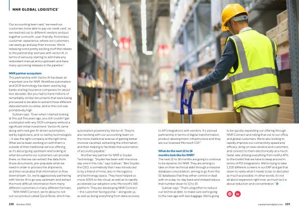 Sullivan says : “ That ' s a big effort to reduce our technical debt , to make sure we ' re going to the new age with less baggage . We ' re going to be quickly expanding our offering through NNR Connect and rolling that out to our office and global customers . We ' re also looking to rapidly improve our connectivity speed and efficacy , bring on new vendors and customers , and connect to them electronically at a much faster rate utilising everything from restful APIs to the toolkit that we have to keep around in terms of PDI integrations . We ' re trying to take 1,100 different screens in our ERP and get that down to really what it needs to be , to declutter as much as possible . In other words , it ' s not all about expansion right now , as much as it is about reduction and concentration .”