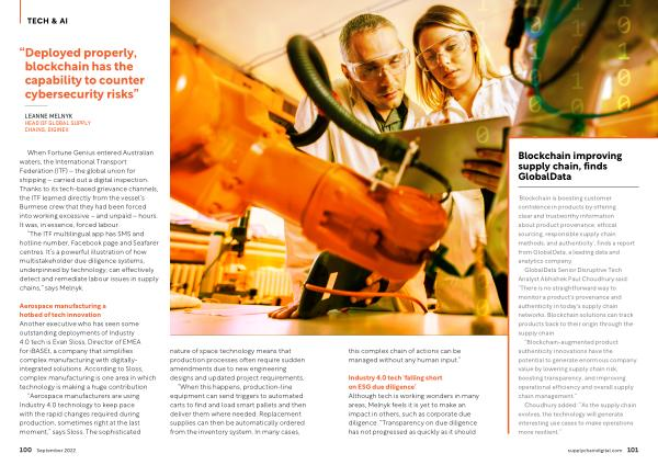 Blockchain improving supply chain , finds GlobalData this complex chain of actions can be managed without any human input .”