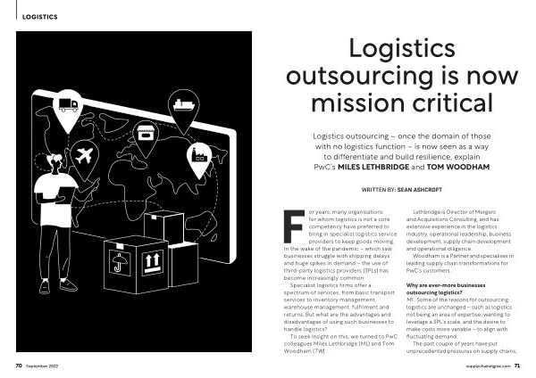 Logistics outsourcing – once the domain of those with no logistics function – is now seen as a way to differentiate and build resilience , explain PwC ’ s MILES LETHBRIDGE and TOM WOODHAM
